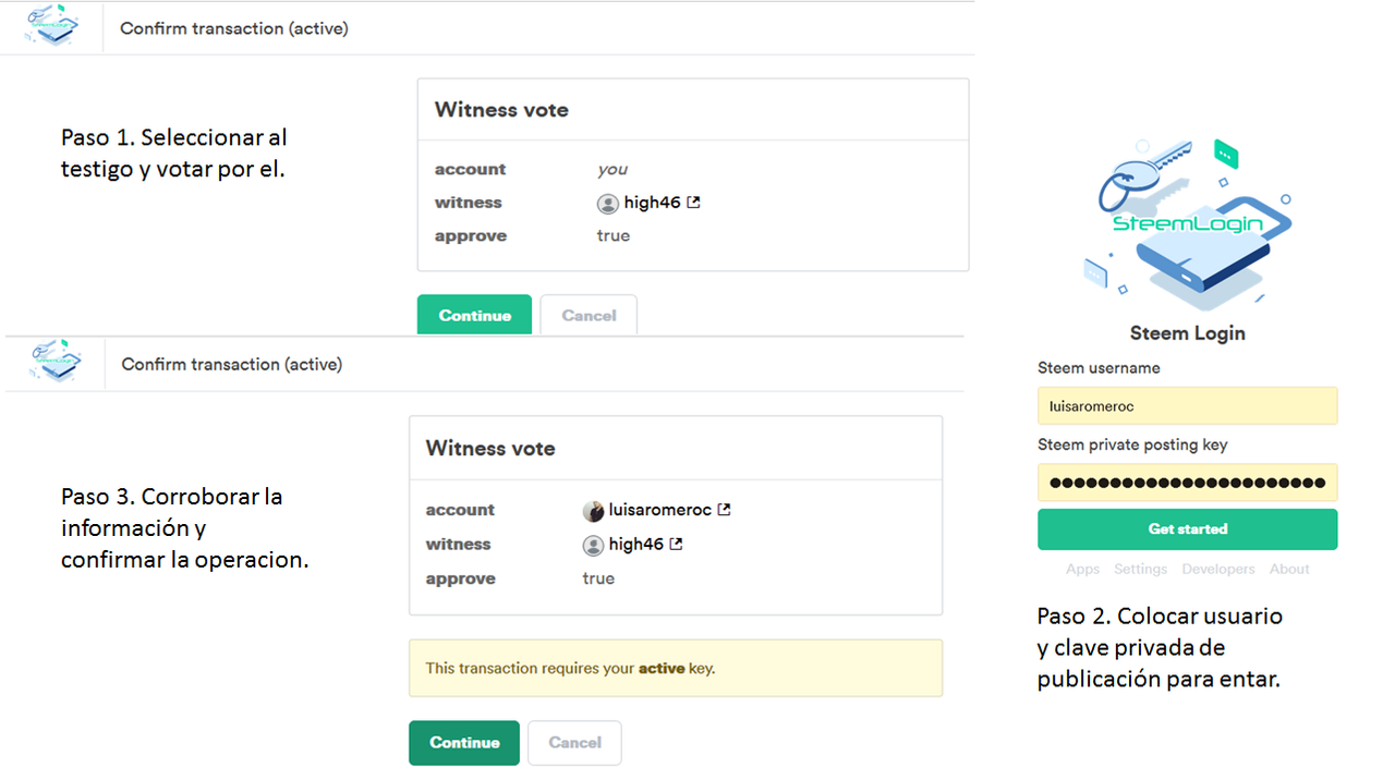 Explique ¿Qué información se muestra en la sección Testigos y los pasos para votar como Testigo?