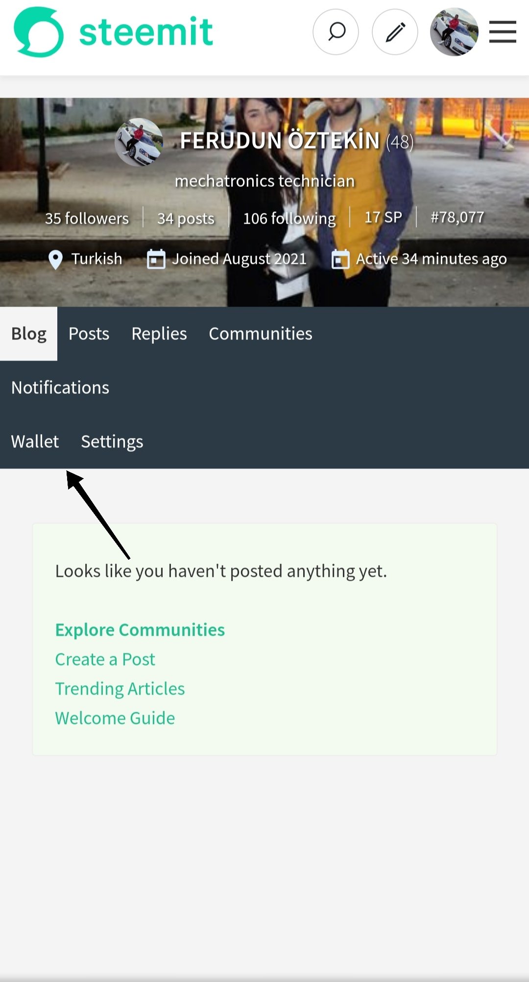 📍Öncelikle profilimize girip oradan cüzdan(Wallet) seçeneğine geçiyoruz.