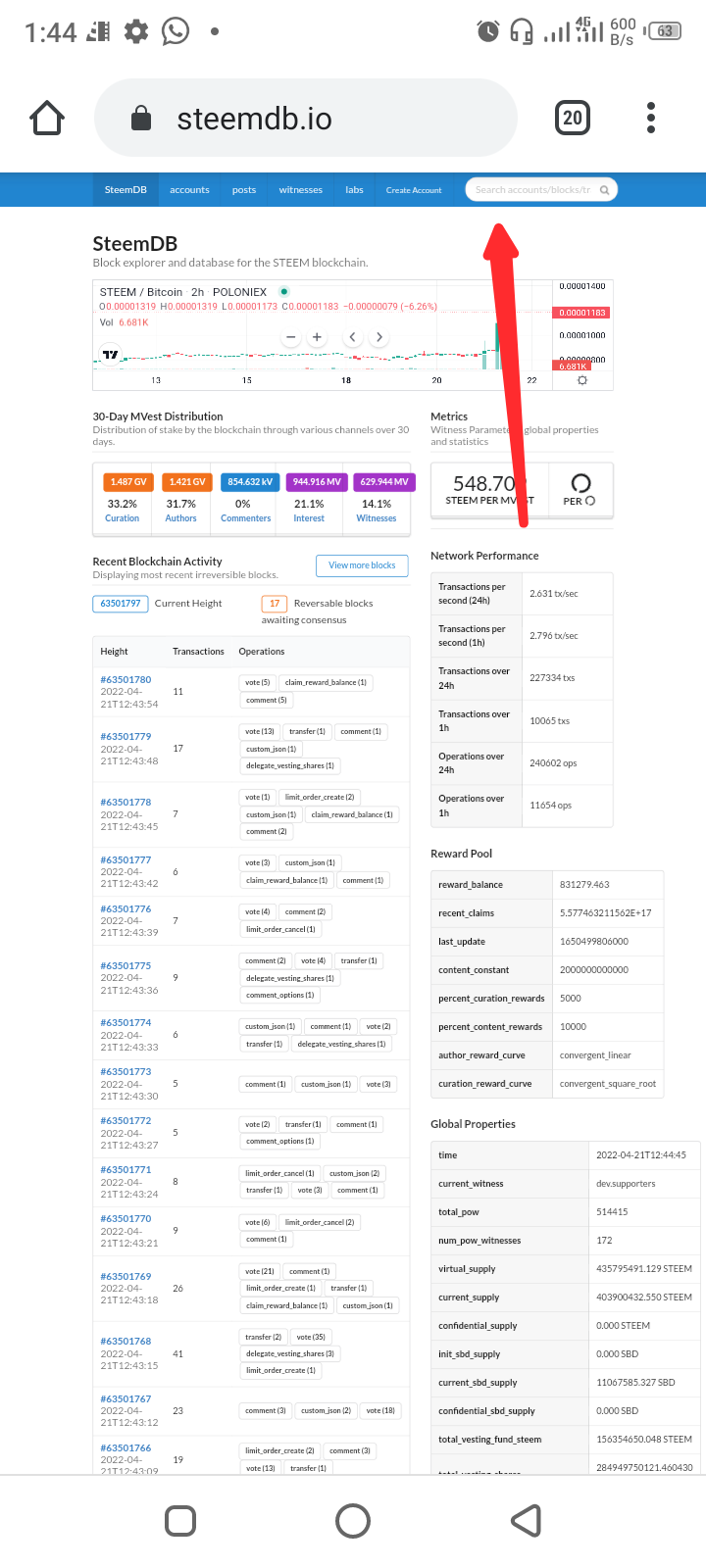 This achievement task aims at exposing us the newbies on how to make use of the tools that are essential for navigation in the Steem Ecosystem. In this particular task the tool to be considered is steemdb.io