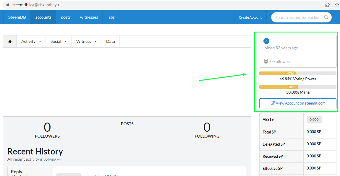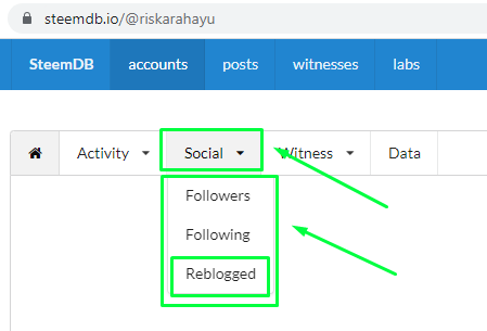 (1) Kunjungi link steemdb.io beserta username anda di belakang nya, seperti steemdb.io/@riskarahayu