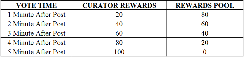 Dari tampilan diatas bisa kita simpulkan jika ingin memberi Voting 100% Curator Reward, postingan kita harus lebih dari 5 menit. Penjelasan untuk Reward diatas juga terdapat pada web FAQ - Steemit. Sekedar informasi juga bahwa jika banyak Steem Power yang kita miliki maka semakin banyak juga Reward Curator yang akan kita terima