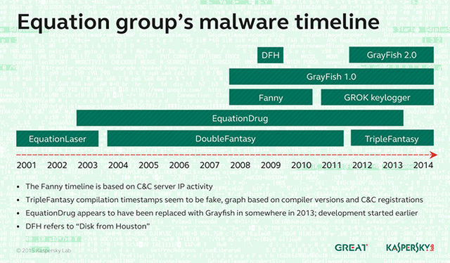 Cyber security company Kaspersky refers to The Equation Group as "a threat actor that surpasses anything known in terms of complexity and sophistication of techniques, and that has been active for almost two decades." Many experts in the field believe the "Equation Group" is associated with the NSA and linked to the everything from Regin and Stuxnet to Hard-drive firmware hacking.