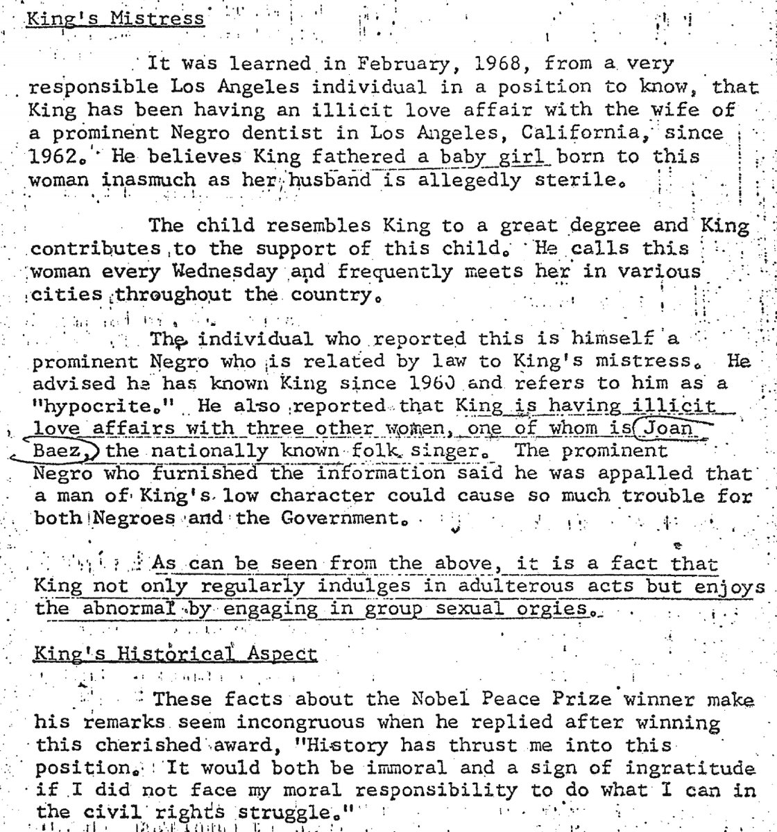 "Martin Luther King had an affair with Joan Baez according to FBI dirt file put together 3 weeks before assassination https://www.archives.gov/files/research/jfk/releases/104-10125-10133.pdf …"