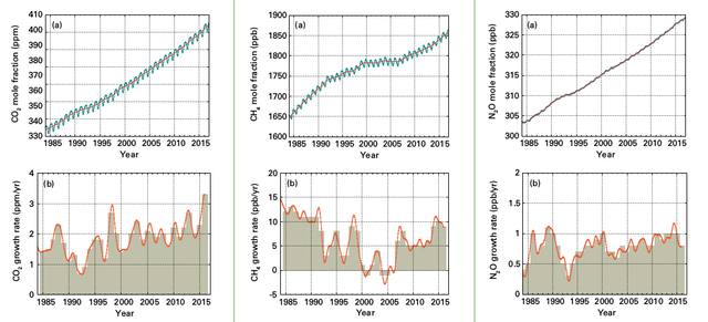 The concentration of other greenhouse gases, such as methane and nitrogen oxide (I), also increases. In 2016, the methane content increased by 0.5 percent to a level of 1,853 billion shares, and the content of gassing gas by 0.24 percent to the level of 329 billion shares.