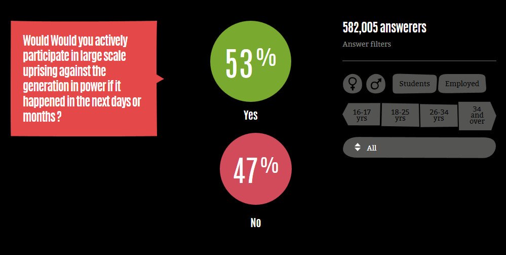 Would Would you actively participate in large scale uprising against the generation in power if it happened in the next days or months?
