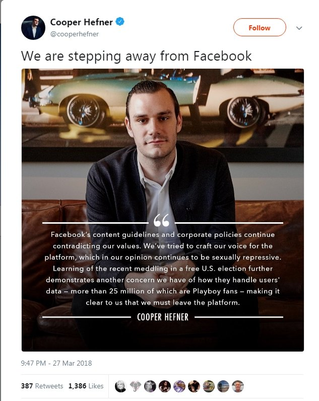 Facebook data leak & strict rules make Playboy magazine decide to delete account