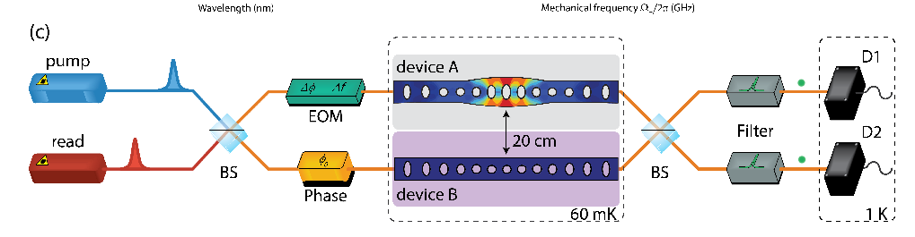 "We create and demonstrate entanglement between two nanomechanical devices across two chips that are separated by 20 cm," the researchers wrote.
