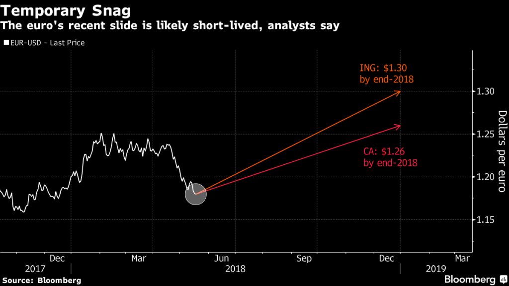 The euro had its worst week in more than three years. The decline of the euro was mainly caused by the policy agreement between the populist parties in Italy. According to the analysts, however, this does not affect the long-term expectation around the euro.