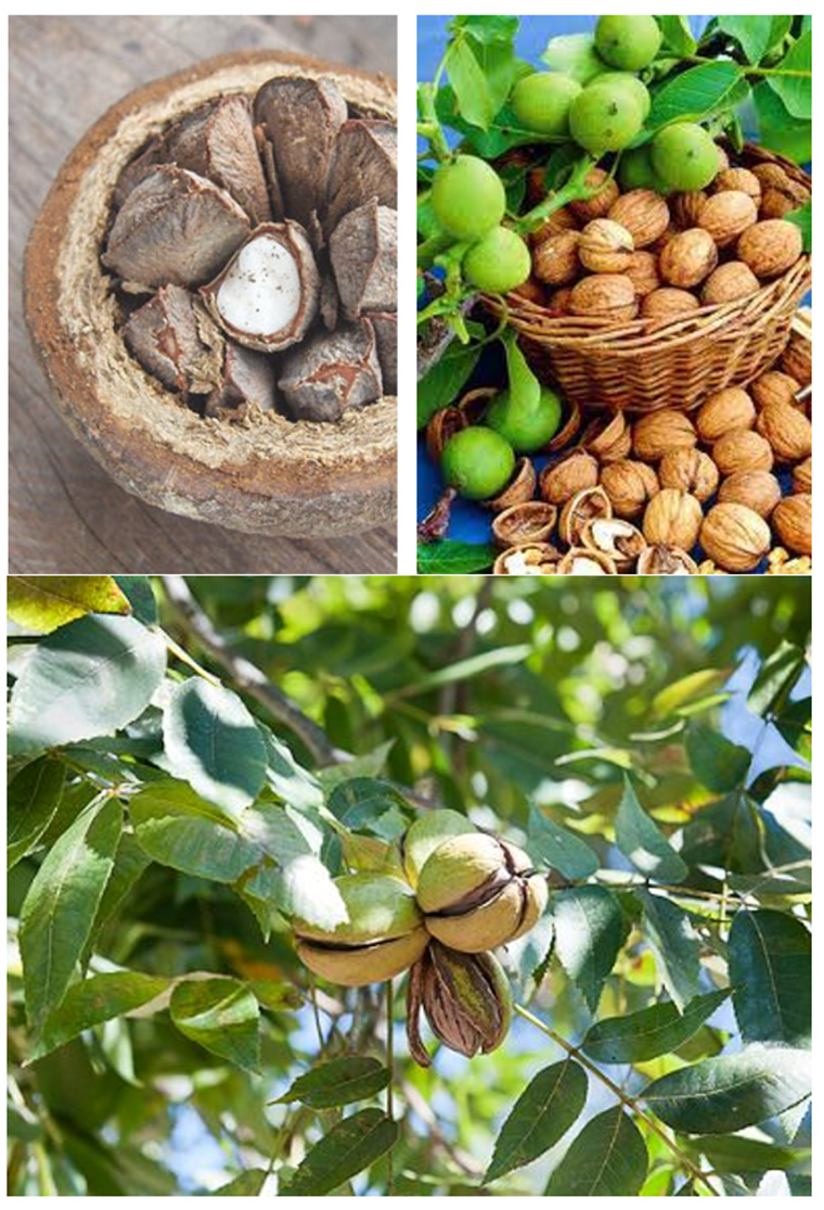 Click on these links for source of photos above and more information on growing: walnuts or pecans & the health benefits of consuming Brazil nuts