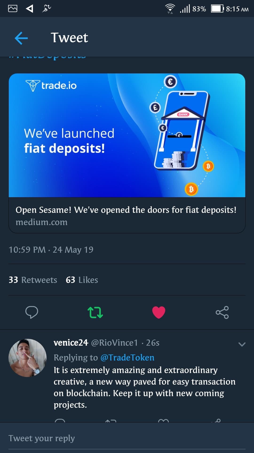 You are viewing a single comment's thread from:RE: Task #13: TradeIO Launched Fiat DepositsView the full contextvenice24 (55)in #odtasks • 6 years ago https://twitter.com/RioVince1/status/1133164643462012930?s=19