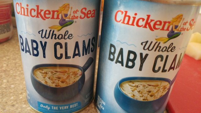 I use 2 cans of clams. Personally I drain off the clam juice because I don't care for the very strong fishy taste.