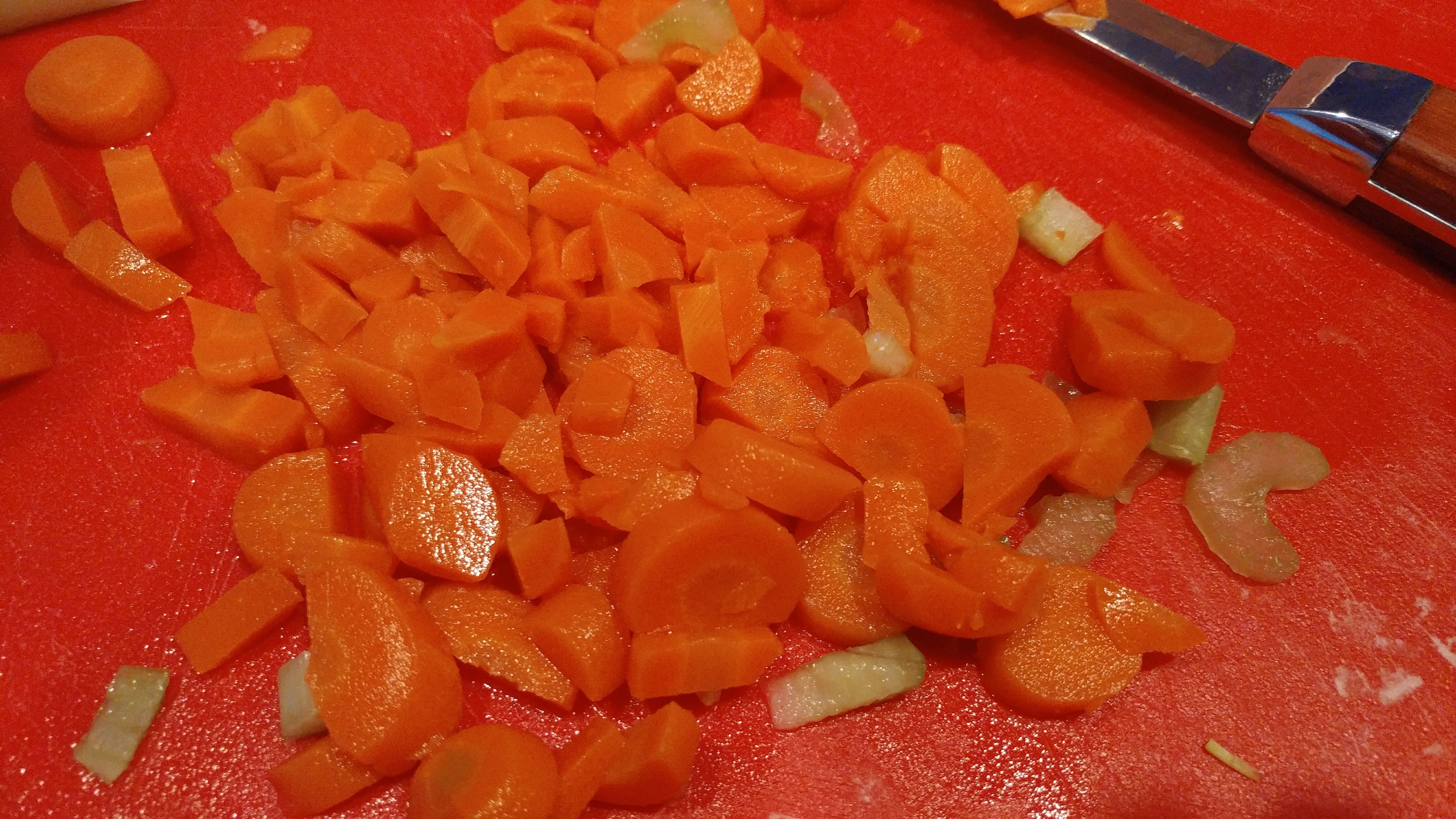 Chop up half an onion and saute it with 2 celery stalks and some carots.