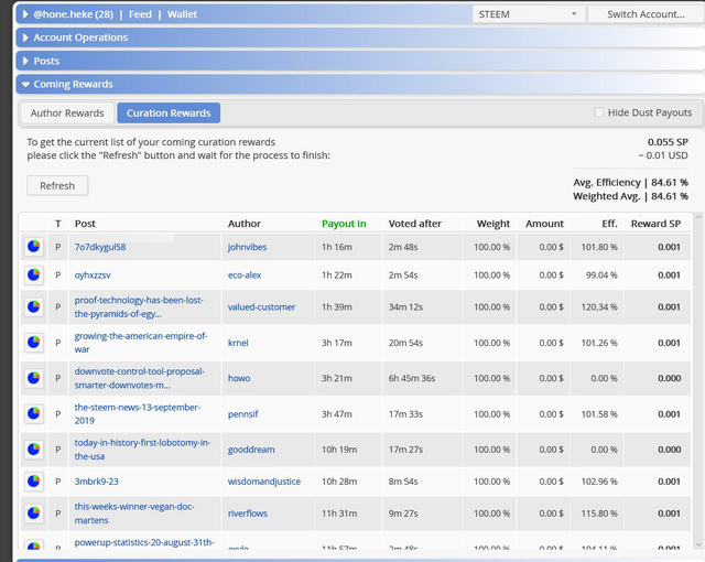 I love your tool sreemworld. I am very new here and I thought the tool was good for helping me understand how to earn curation rewards. As you can see from the screenshot it looks like I was doing well but only a small percentage of the rewards end up in my account. Are you using different calculations than Steemit? I am getting maybe 1 in 5 or six payouts