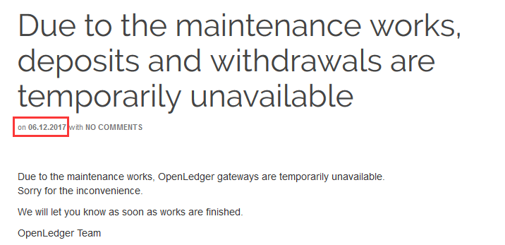 Openledger 一直维护,充值始终不到账,这是个坏消息。
