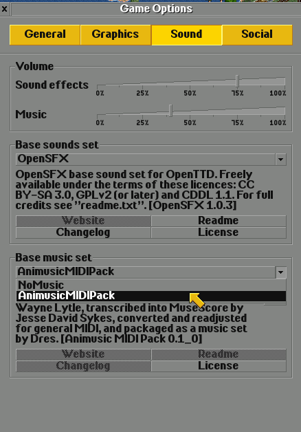 Onder de tabbladen “Graphics” en “Sound” selecteer je de zojuist gedownloade bestanden. ( Zie foto’s)