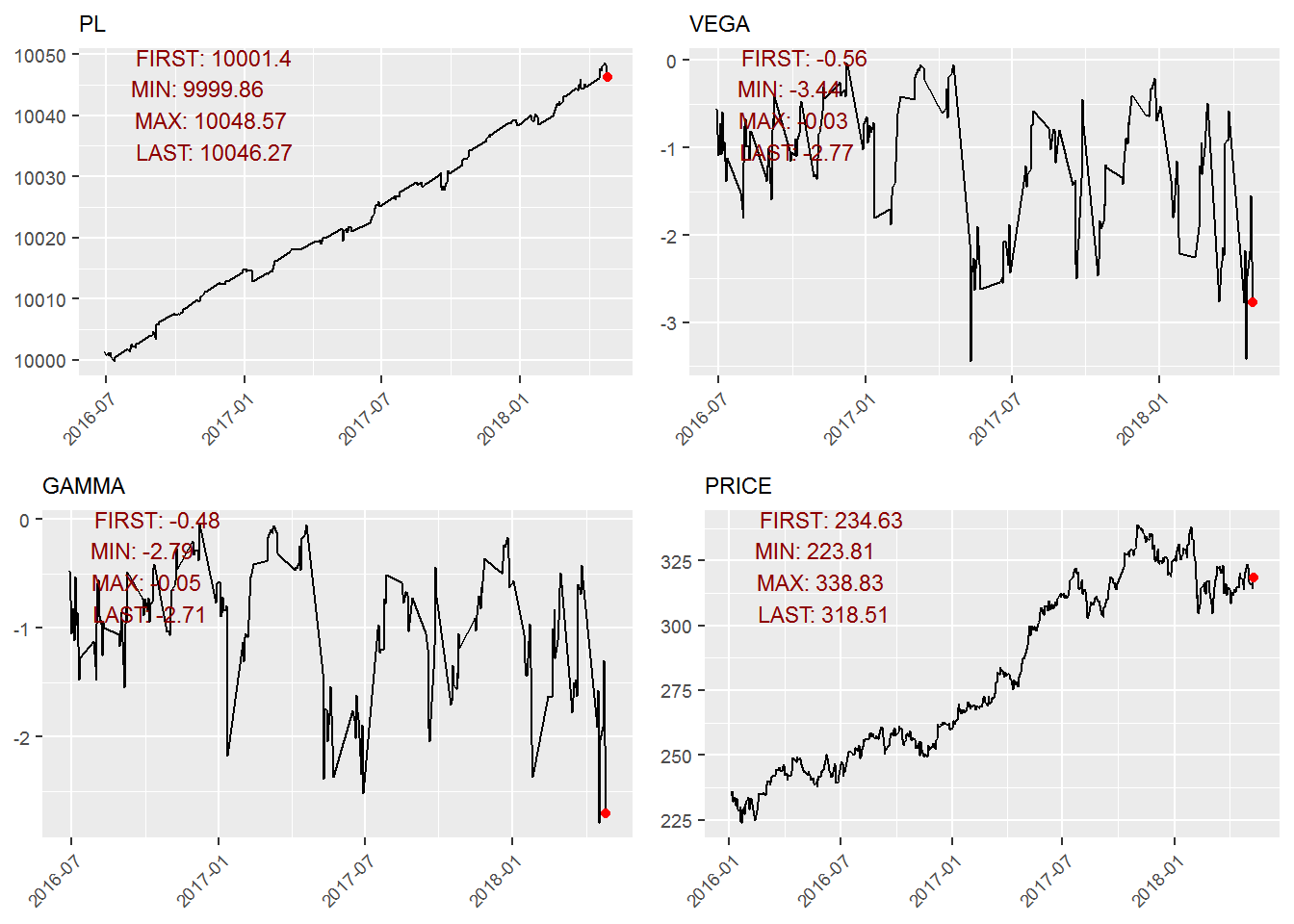 조건을 간단히 나열하면 잔존만기 45일인 Moneyness 110%에 해당하는 콜옵션을 매도하고 약 15일 정도 80% 비율로 델타헷지를 하면서 보유했을 때의 성과이다.