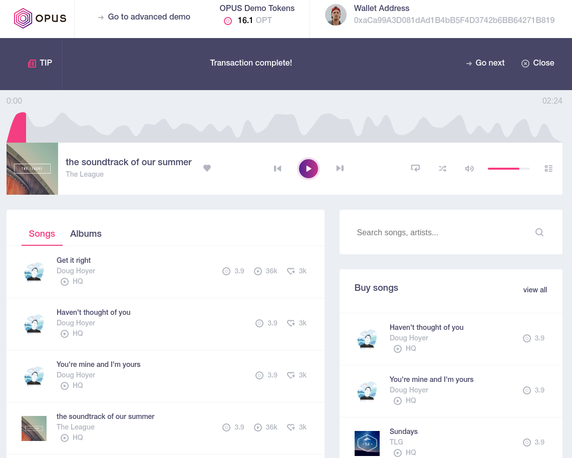 There you can buy songs with OPT tokens and while a demo, the interaction and idea is pretty frictionless.