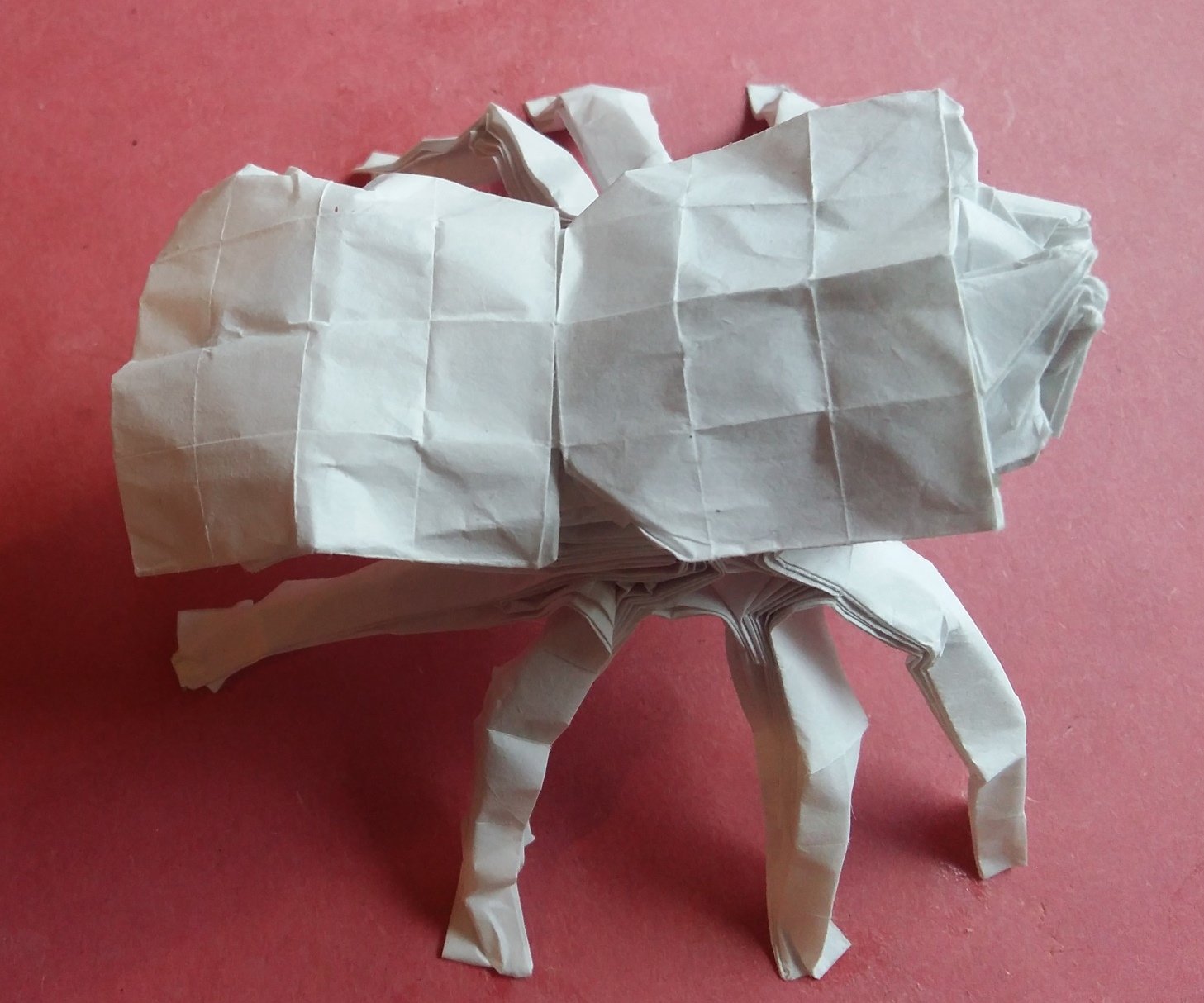 Here's the third task, I'm pretty awful at complex animal origami and had to improvise a bit at the shaping in the end. This model did inspire me to try making some more complex models I haven't tried in ages and see if I improved at all. I managed to make one model I tried a lot in highschool and realized how easily I can read most of the harder collapsing parts I'd struggle a lot with before. I also discovered paper I wouldn't even look for if I didn't need it. Maybe I'll try again next year and hopefully do better.