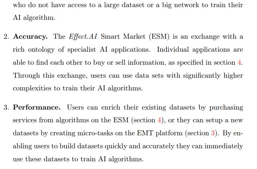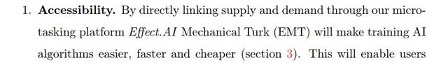 By providing simple solutions to these above problems, EFFECT.AI will not only bring about a positive social and economic impact of a decentralized Mechanical Turk, but will also bringing down the cost of AI development which will in turn increase integration and finally Increase the derivable benefits of individuals or groups from the Effect.AI Website.