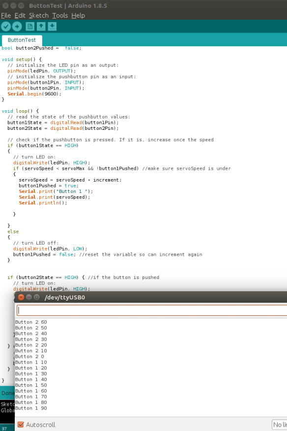 Now I have two buttons that can control a variable called servoSpeed and the functionality is working correctly, one press only increments the variable once.