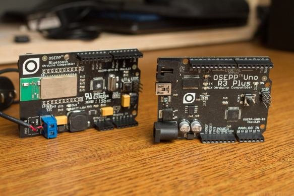 Two Arduino Clone boards a Bluetooth[Left] and Uno[Right]