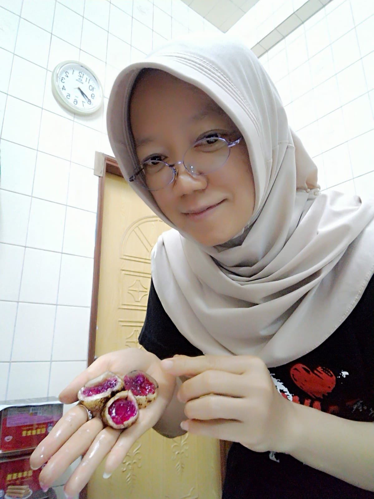 Di makan mba, sayang kalau di buang mubadzir, itukan merah merahnya buah naga, gak punya pewarna makanan soalnya 😀😀