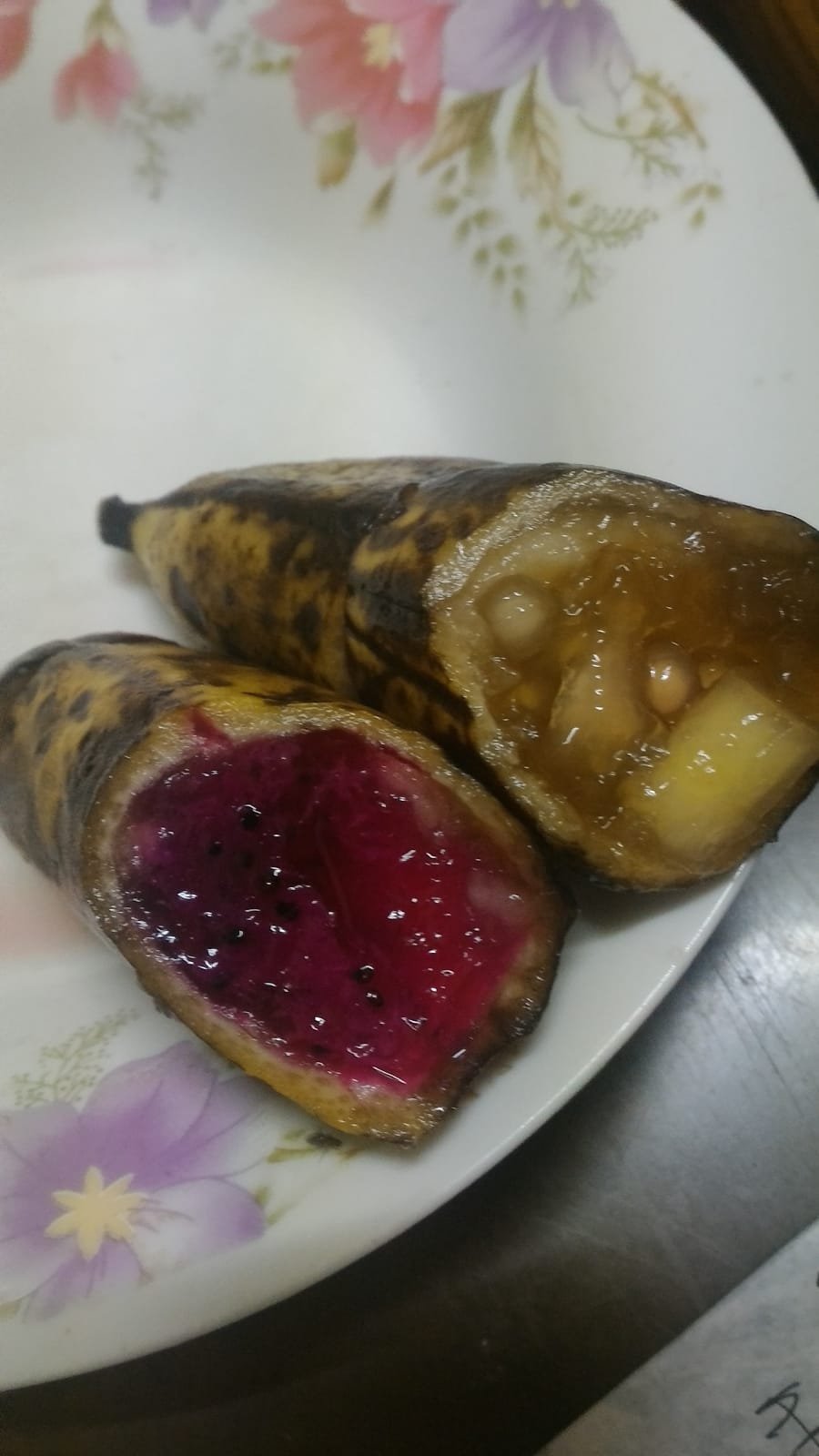 Banana dragon fruit pudding and Banana pudding pearls