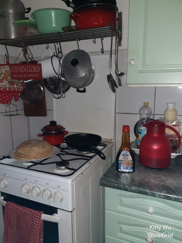I like your red pots and thermal flask and the sign that said "Kitchen Closed" :D