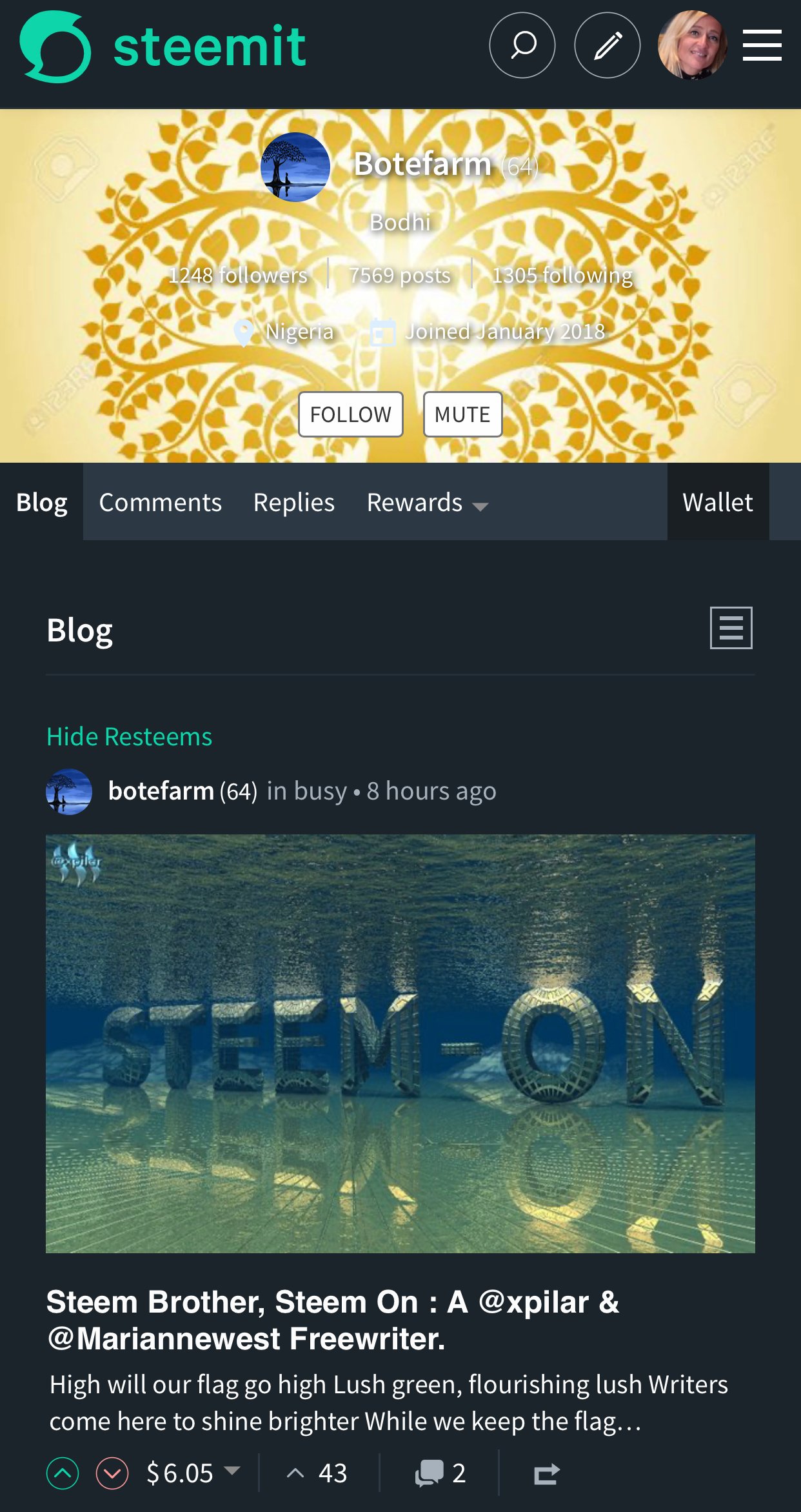 @botefarm Rep 64 joined : january 2018 from Nigeria 🇳🇬