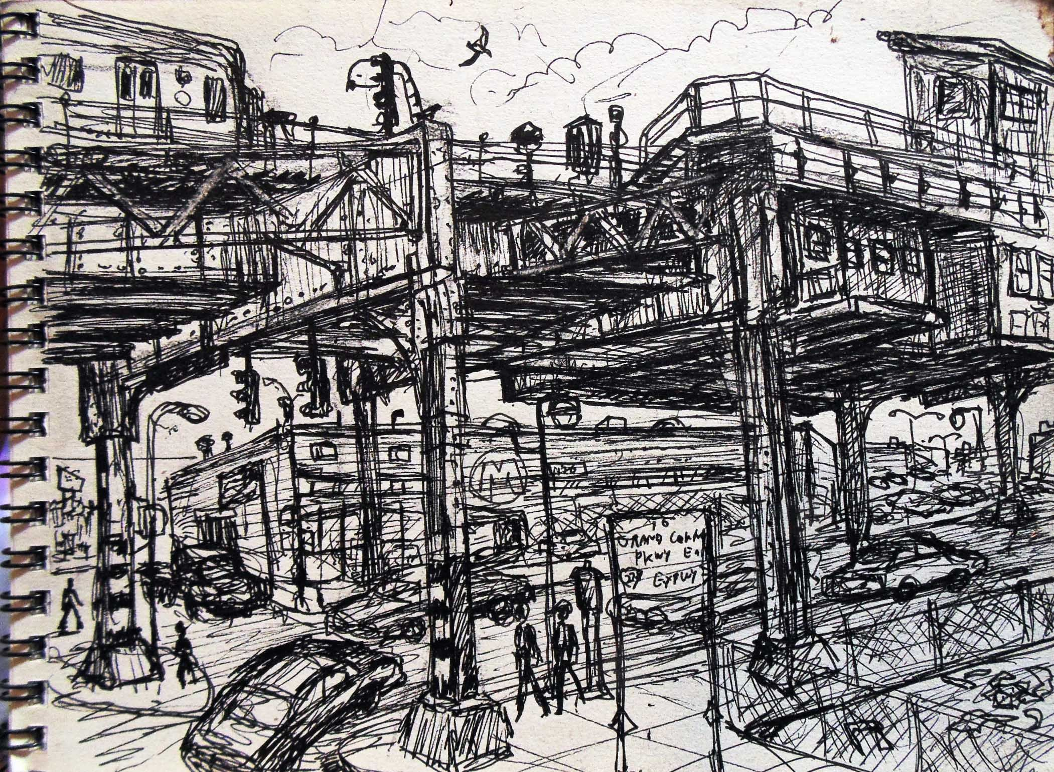 Summary of the article: It is a post by Arthur Robins that shows his original artwork. It shows a sketch of the train junction in Queens, NYC. It takes me back as I have lived there 2 different times in my life. Its very good and I'm happy to follow Arthur's other pieces.