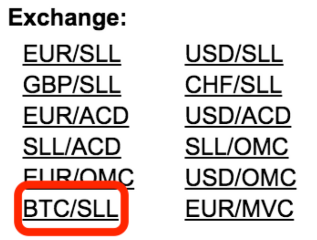 4. You can now safely convert your SLL to Bitcoin, under Exchange select BTC/SLL.