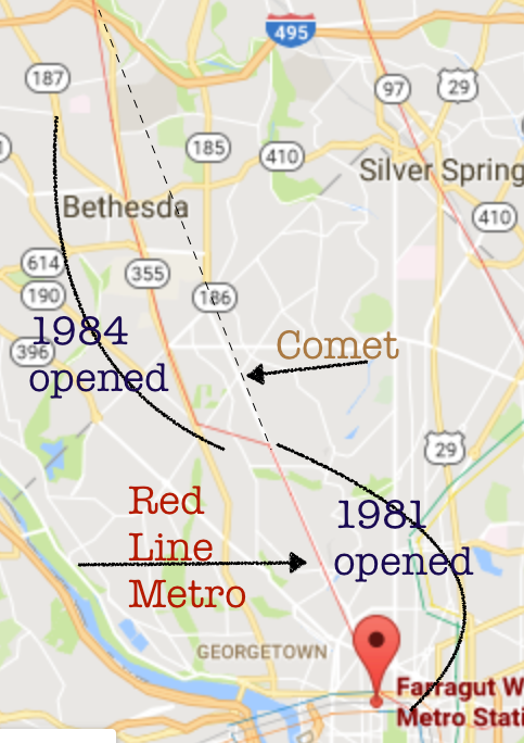 First, the Dupont Underground theory: The tunnels are not directly related to the Metro. They are the remnants of DC's streetcar system that went obsolete in 1962. But I don't believe that those tunnels get anywhere near Comet because of geography. The streetcar tunnels are specific to a few blocks around Dupont Circle. They would have been aboveground most of the way to and past Comet because there's a geographical feature known as Rock Creek that lies between Dupont and Chevy Chase, which has cut a wide and deep canyon spanned by the Taft Bridge https://en.wikipedia.org/wiki/Taft_Bridge. (For reference, Comet is located well past the north (left) end of the bridge and Dupont Circle is located well past the south (right) end of the bridge. If you look at the pictures, I think you'll agree that the early streetcars did not tunnel all the way under that gorge. (And see the streetcar picture on the Taft's companion bridge for East/West traffic over Rock Creek, the Duke Ellington https://en.wikipedia.org/wiki/Duke_Ellington_Bridge).