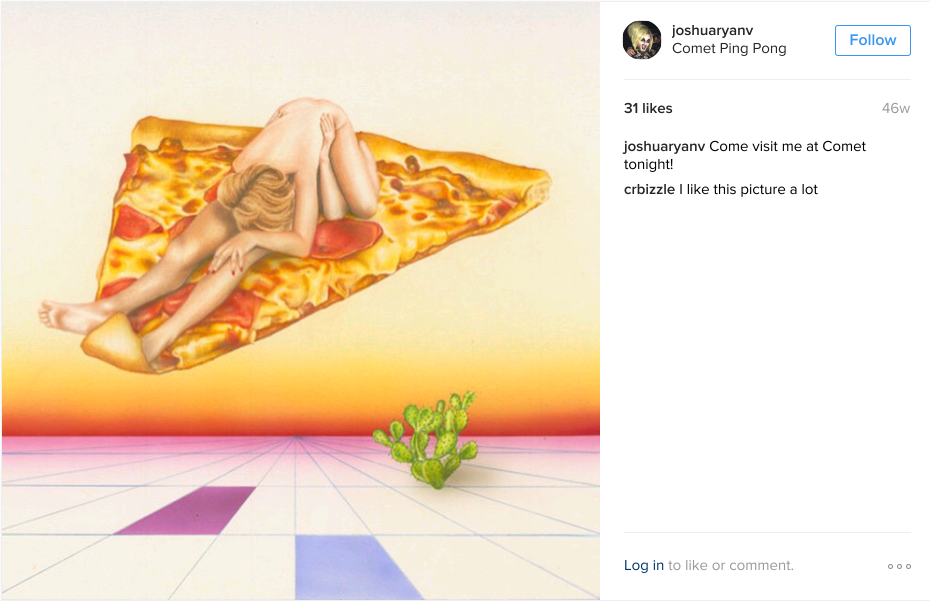 EDIT: users saying this actually might is a self portrait of the artist and his pornstar wife. But I still think it's inappropriate that the owner of a "kid friendly" establishment was posting hardcore pornography to his Instagram at the very least.