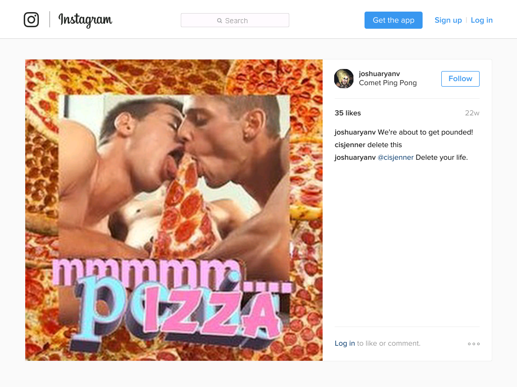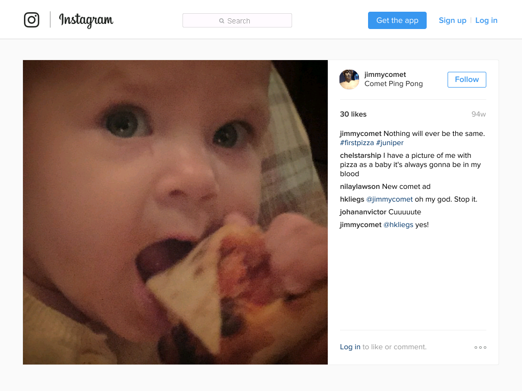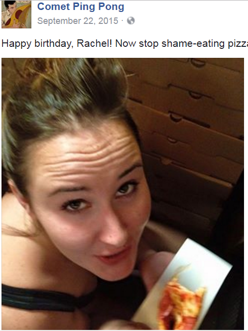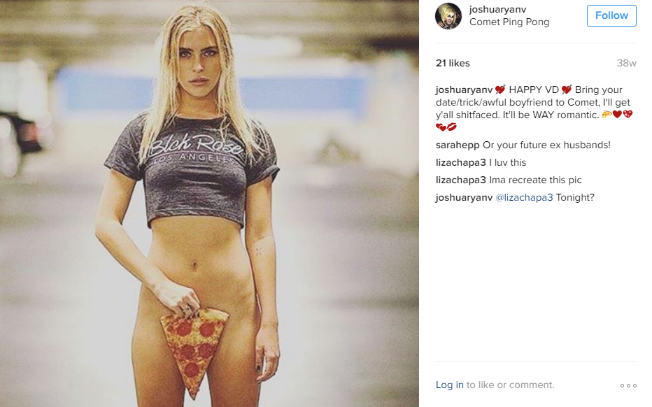 Pizza on their privates: https://www.facebook.com/cometpingpong/photos/a.434399919925536.100580.113980191967512/573459342686259/?type=3&theater