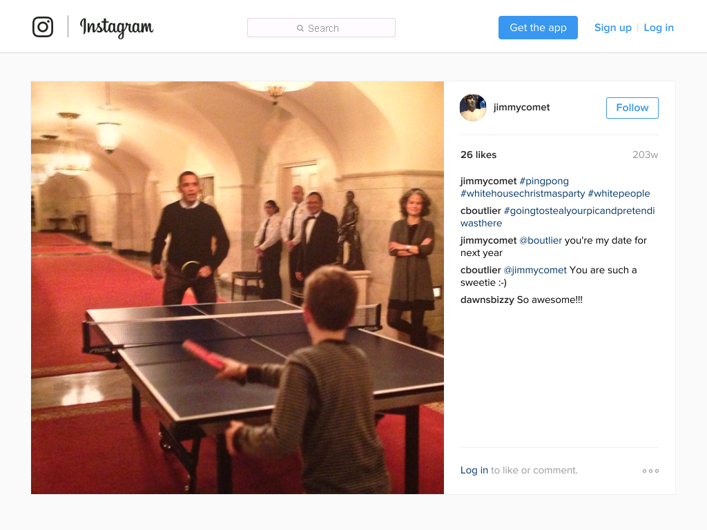 Here is a photo Alefantis posted showing Obama playing ping pong with a young boy: