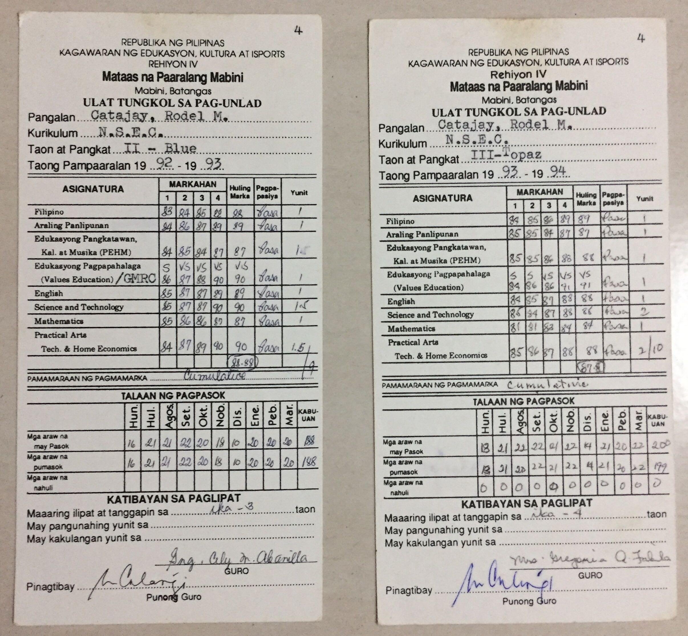 My Grades From The Pastguruvaj (57)in #philippines • 8 years ago Things like these get very important as it age. Memories worth more as we get old. I can’t find my 1st year report card as well as my 4th year. I guess it got lost in the mess of all of my stuff. Luckily these 2 survived. #steemph #steemfamilyph #mabinisteemitclub #memories