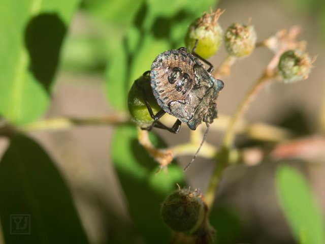 The brown marmorated stink bug (Halyomorpha halys) is an insect in the family Pentatomidae that is native to China, Japan, the Korean peninsula, and Taiwan. It was accidentally introduced into the United States, with the first specimen being collected in September 1998. The brown marmorated stink bug is an agricultural pest and by 2010–11 had become a season-long pest in U.S. orchards. It has recently established itself in Europe and South America.