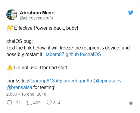 "This text message freezes the recipient's device and may force it to restart it, do not use it for malicious purposes," the informant posted on the social network.