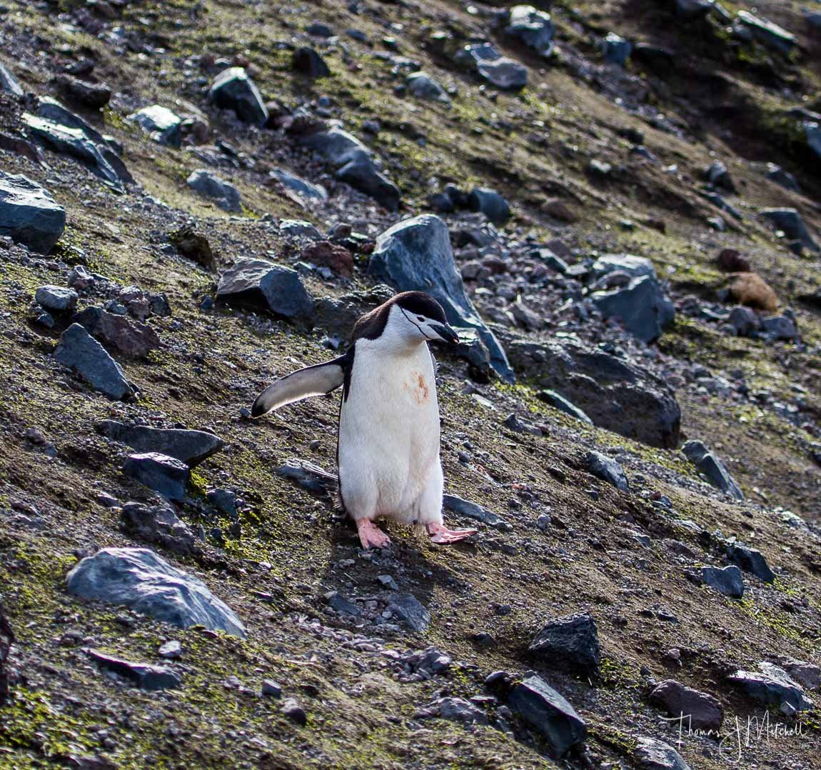 Just a Chinstrap penguin going about his day by scaling down a very steep hill so he can go foraging for food