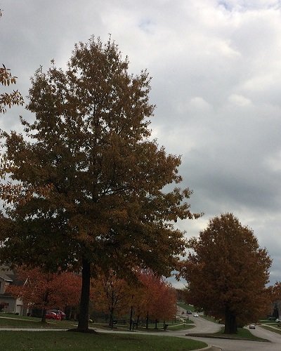 Beautiful Red Leaves Cover This One. I love how bright and full it is. But, I know it won't be long before the leaves are gone and the tree is covered with ice and snow. Maybe it will have some icicles hanging from it as well. We shall see.