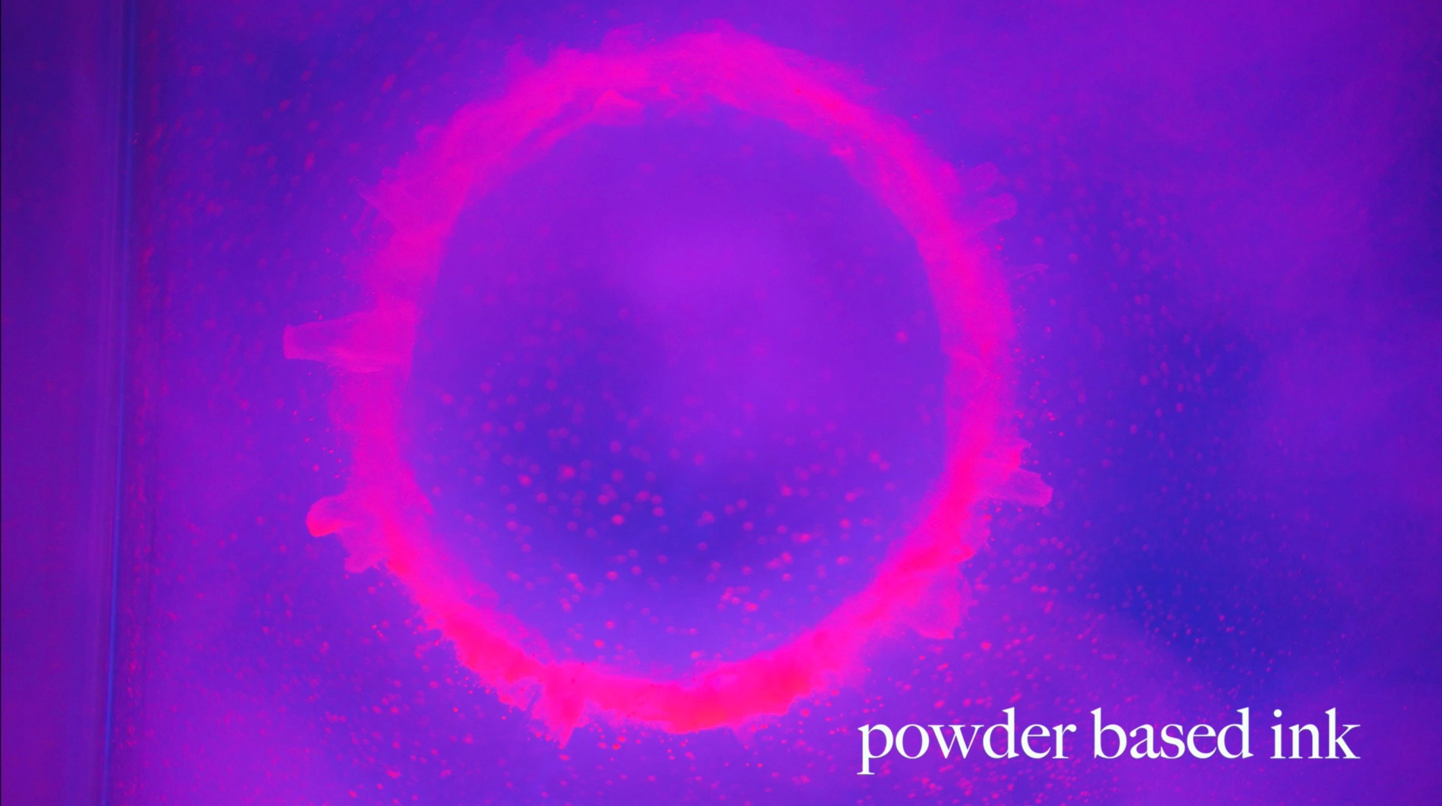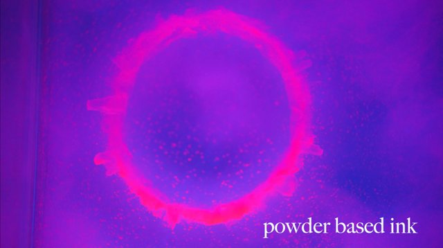 So, we bought a large fish tank, a large sheet of white paper to put behind it, a few lights and a bunch of different ink types. I filled it up with water, positioned my lights and paper... and then I started playing! As you can see below: