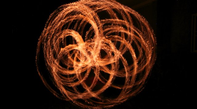 So we tried using poi instead. For those of you who don't know, poi are two fabric wicks attached to metal chains and can be swung around in a very beautiful way, when one is practiced in this art.