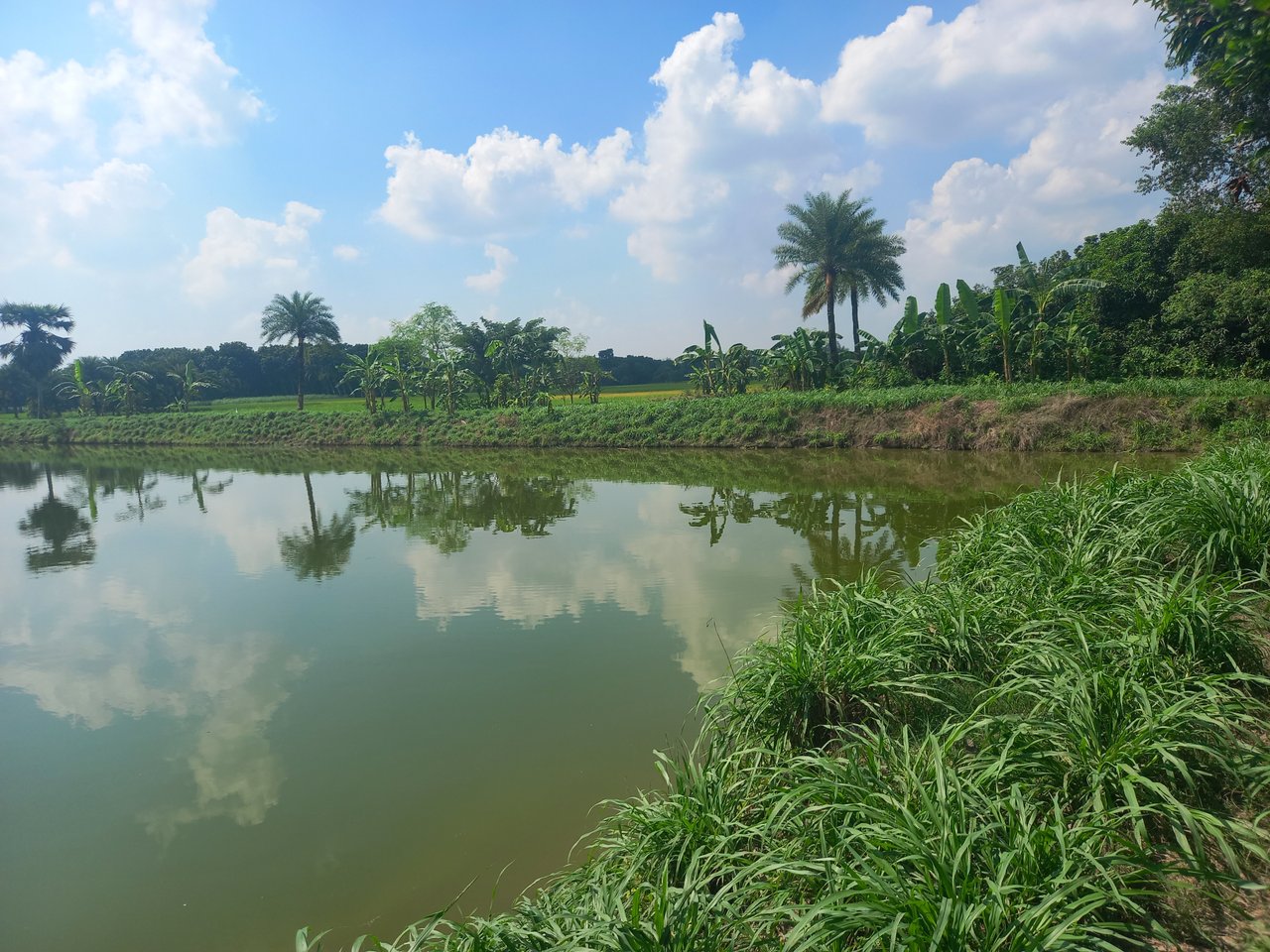 পুকুরের পাশে রয়েছে গবাদি পশুর জন্য ঘাস। হালকা বাতাস এবং গাছগুলো নড়াচড়া করছিল। বেশ ভালো লাগছিল আশেপাশের প্রাকৃতিক সৌন্দর্য।