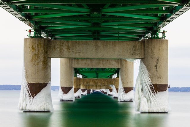 That worked well enough that that winter I decided to do it again with a different bridge: the Mackinac Bridge between the two peninsulas of Michigan.