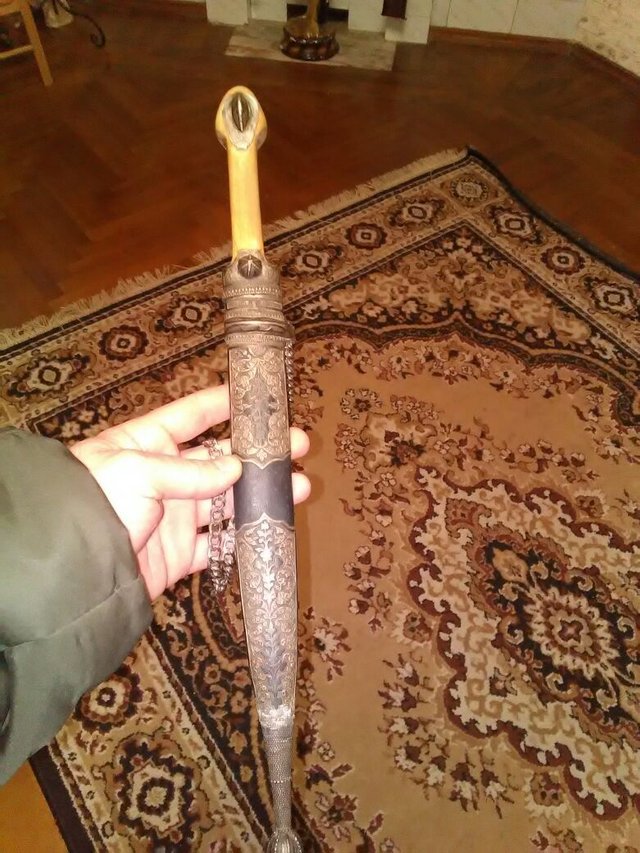 Every Terek Cossack had his own combat dagger. This dagger was part of the form of Cossacks and melee weapons. Therefore, the Cossacks always bought very expensive and high-quality daggers. But after the revolution in Russia, the Terek Cossacks were banned and people had to hide and it was forbidden to say that they were Cossacks. So the former Cossacks tried to hide their weapons and rewards. Now treasure hunters often find things hidden by Cossacks. The dagger in the photo was found in the wall of the old house by treasure hunters.