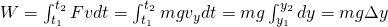 You can see that this is the same result that we would get by simply using the product of force and distance, as gravity is applied parallel to the motion of displacement and the displacement in that case is equal to the distance.