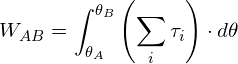 So, the total work done on a rigid body is equal to the sum of torques integrated over the angle which the body rotates. A more descriptive way of writing the formula is: