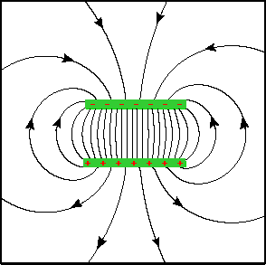 The electric field of such a capacitor is mostly concentrated between those two plates.