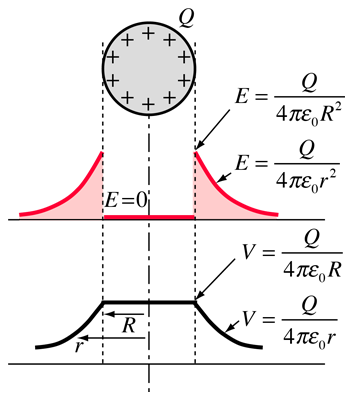 Suppose a solid, conductive, charged sphere of radius R with total charge q.