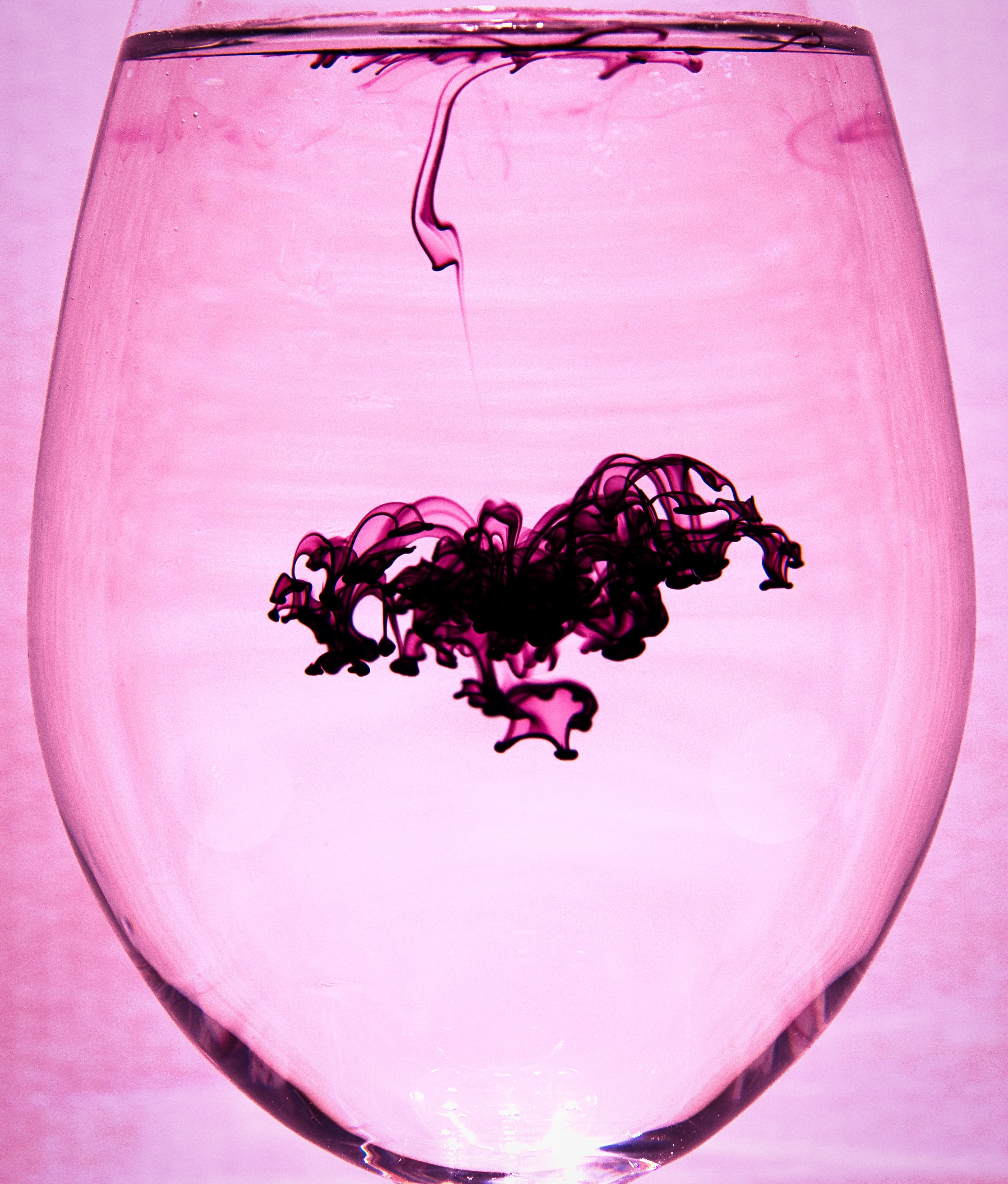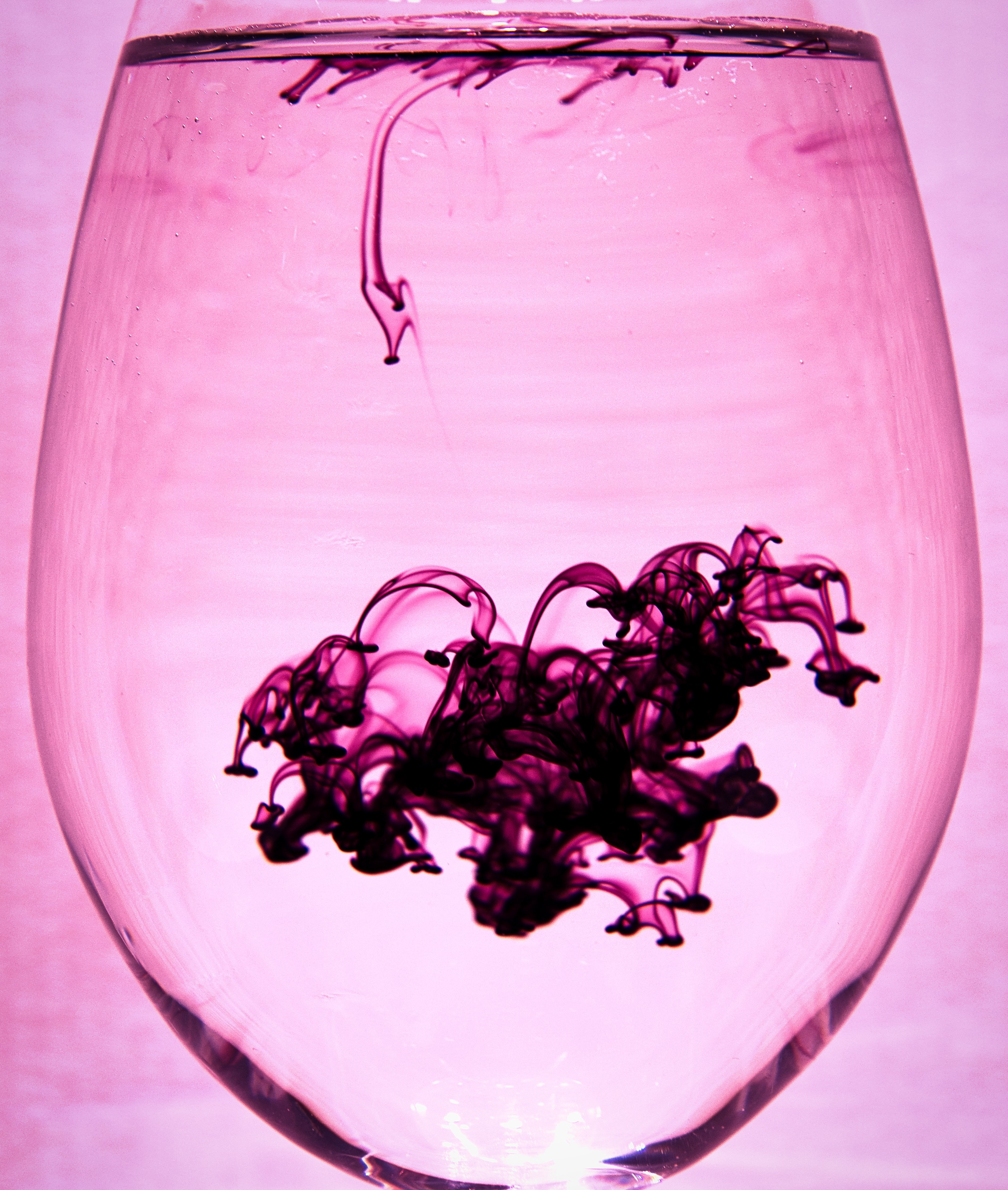 Setup, thick white cardboard , wine glass filled with water, and some bright lights, not the best but hey... I was in a bathroom. There are some sets with cold water and some with hot. You will see the difference between how cold and hot water affects the food colouring. We will start off the series with single colours then get a little crazier.